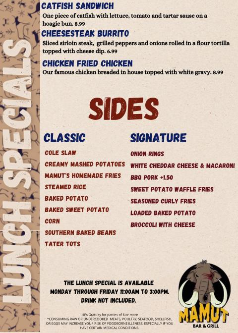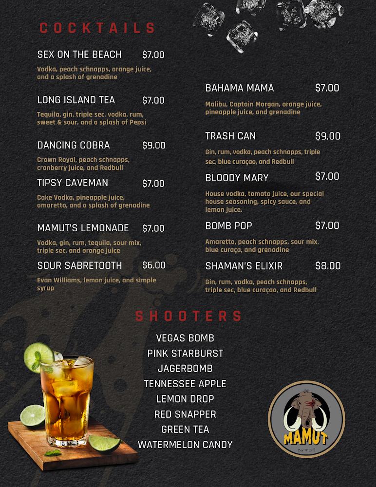 Welcome to Mamut Bar N' Grill, your go-to destination for authentic American cuisine in Mount Sterling, KY. Located at 648 N Maysville St, we pride ourselves on serving fresh, flavorful dishes crafted from the finest ingredients and traditional recipes. Whether you're stopping by for lunch or dinner, enjoy our inviting atmosphere complemented by excellent cocktails and a wide selection of beers. With amenities including takeout, delivery, and accessible seating, we cater to all guests. Catch a game or live concert while savoring our local specialties—Mamut Bar N' Grill is where great food meets good company!